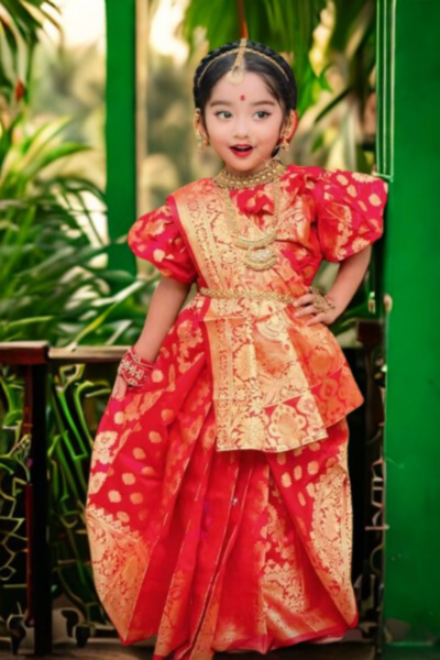 This Baby Special Ready-to-Wear Saree Set is specially designed for children.