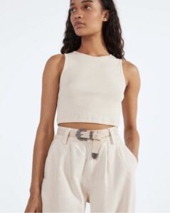 The insulated jacket is made of leather. A light layer of insulation. Details: stand-up collar, zipper, two pockets on the sides.