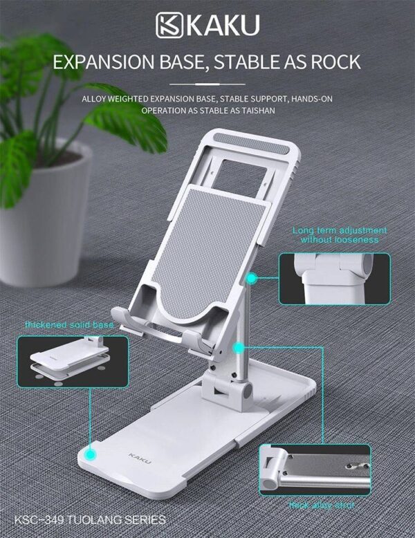 উন্নতমানের ABS প্লাস্টিক, অ্যালুমিনিয়াম অ্যালয় এবং সিলিকা জেল দিয়ে তৈরি, যা স্ট্যান্ডটিকে মজবুত এবং দীর্ঘস্থায়ী করে তোলে।