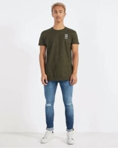The insulated jacket is made of leather. A light layer of insulation. Details: stand-up collar, zipper, two pockets on the sides.