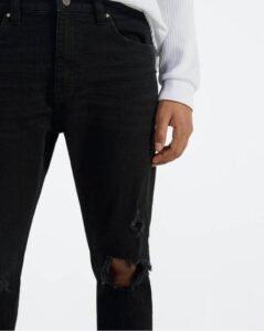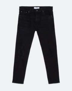The insulated jacket is made of leather. A light layer of insulation. Details: stand-up collar, zipper, two pockets on the sides.